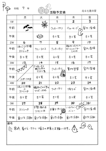 きらきら星、いちばん星、北斗七星の家、各事業所の主な予定です。