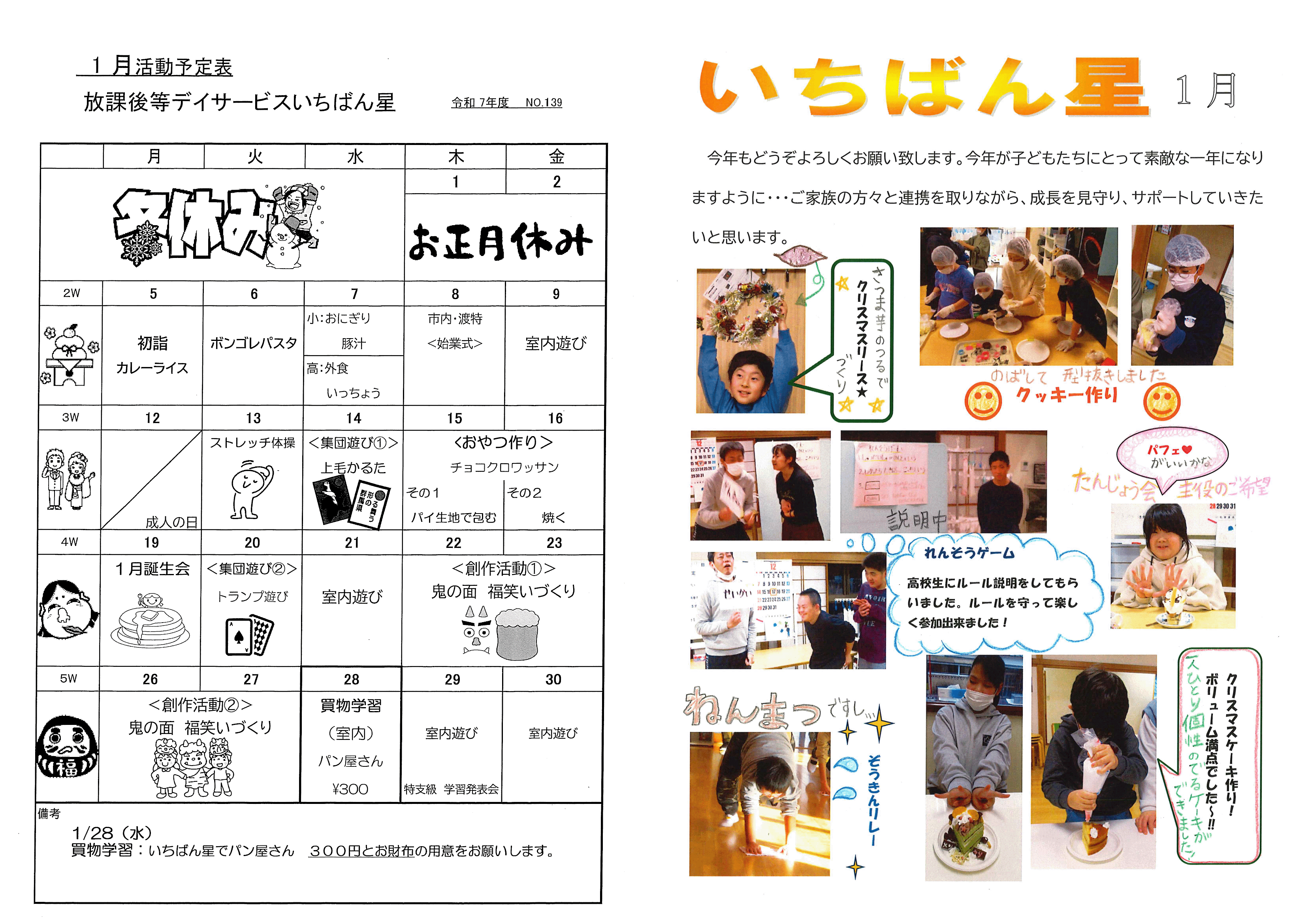 いちばん星からのお知らせです。予定は変更になることがあります。