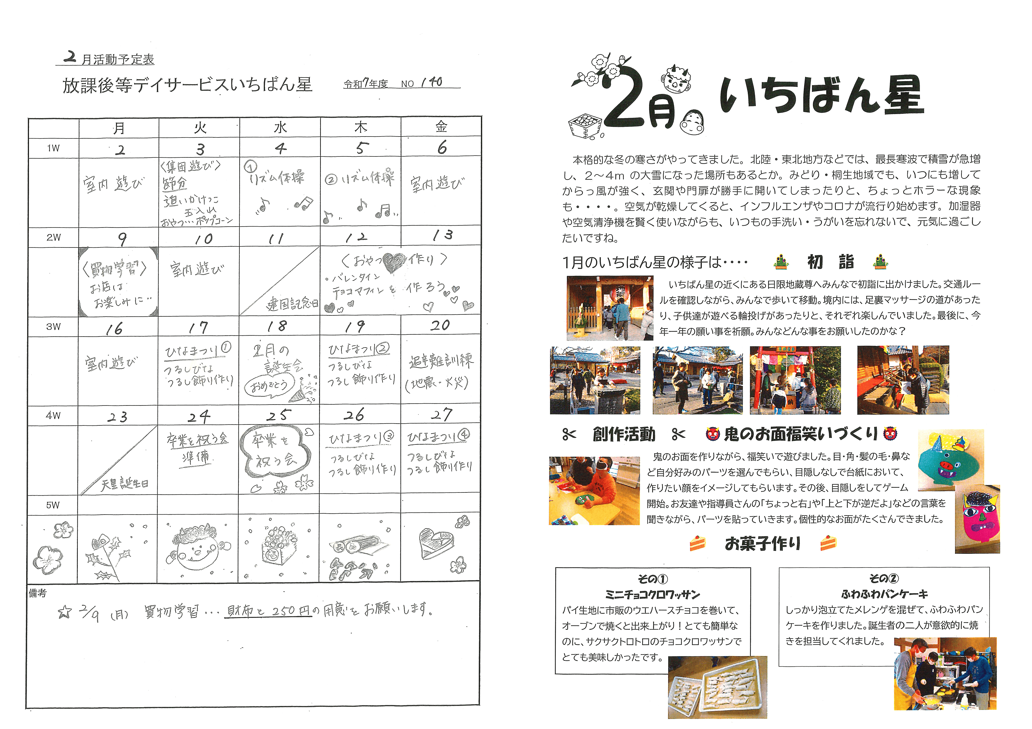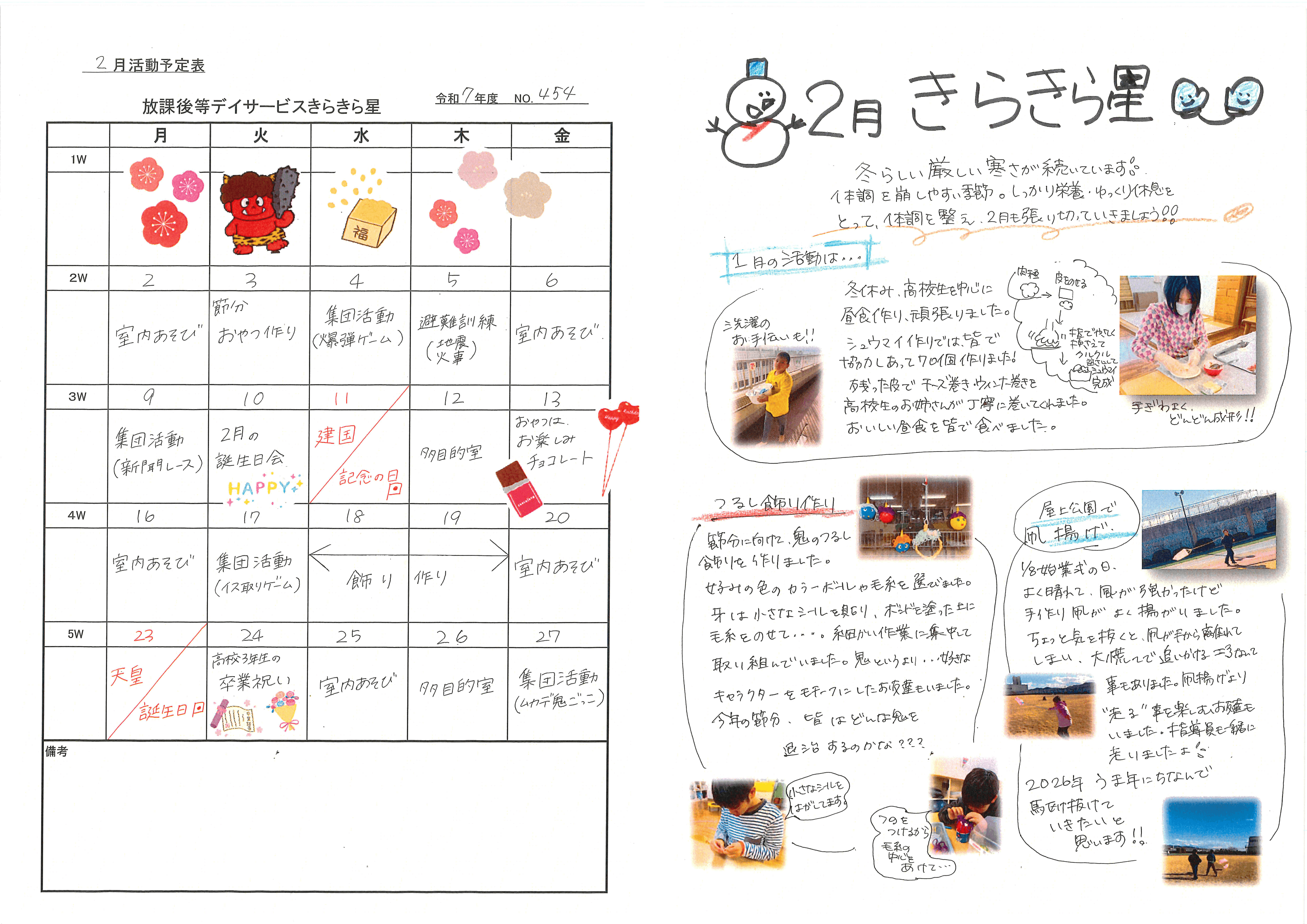 きらきら星 2026年2月の活動予定