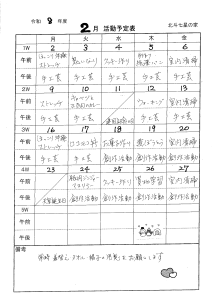 北斗七星の家 2026年2月の活動予定